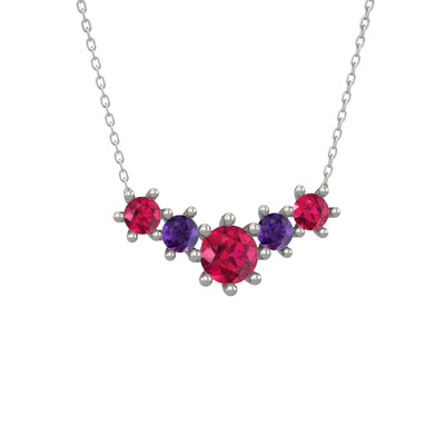 Rodolit garnet ve ametist 8 ayar beyaz altın kolye (40 cm beyaz altın rolo zincir)