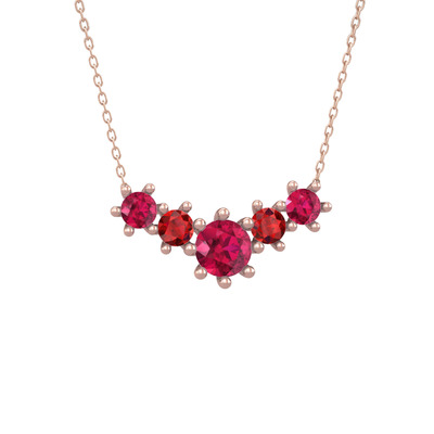 Rodolit garnet ve garnet 8 ayar rose altın kolye (40 cm rose altın rolo zincir)