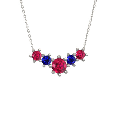 Rodolit garnet ve lab safir 14 ayar beyaz altın kolye (40 cm beyaz altın rolo zincir)