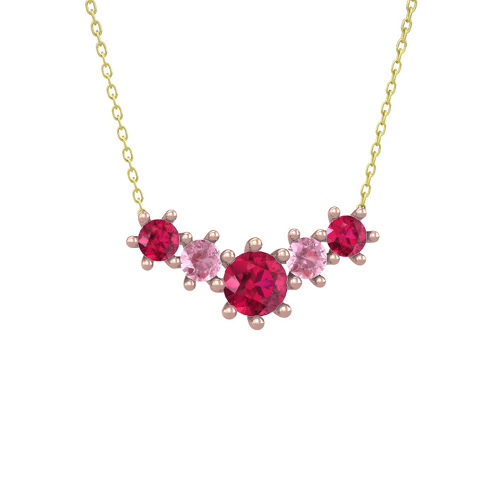 Rodolit garnet ve pembe kuvars 8 ayar rose altın kolye (40 cm altın rolo zincir)