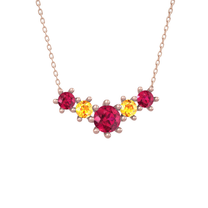 Rodolit garnet ve sitrin 8 ayar rose altın kolye (40 cm rose altın rolo zincir)