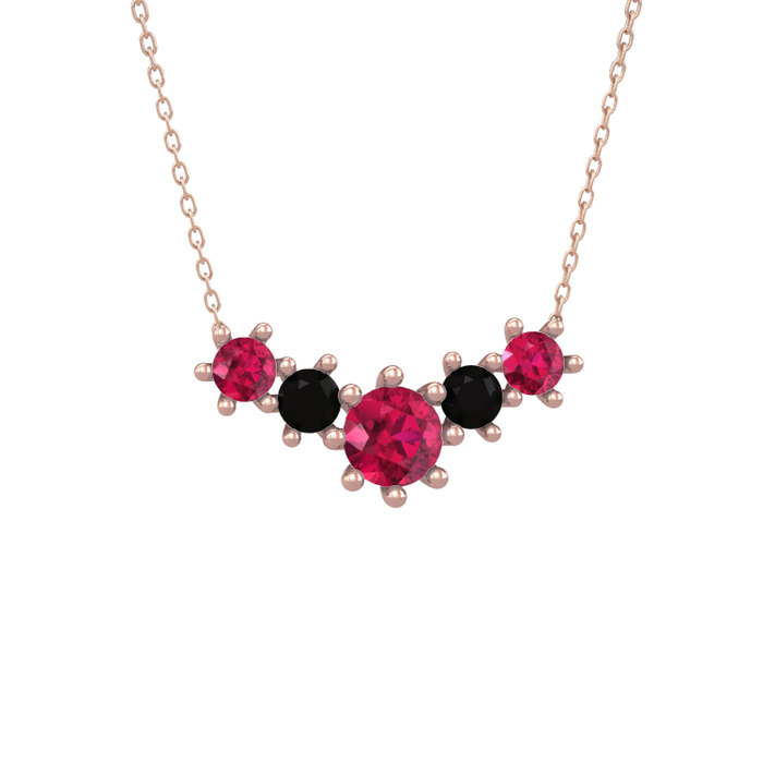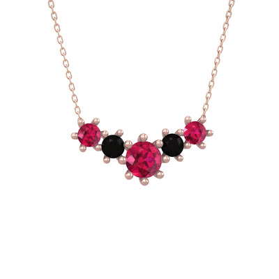 Rodolit garnet ve siyah zirkon 18 ayar rose altın kolye (40 cm gümüş rolo zincir)
