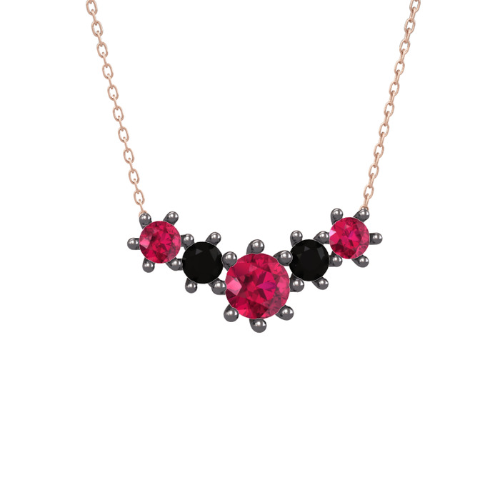 Rodolit garnet ve siyah zirkon 925 ayar siyah rodyum kaplama gümüş kolye (40 cm rose altın rolo zincir)