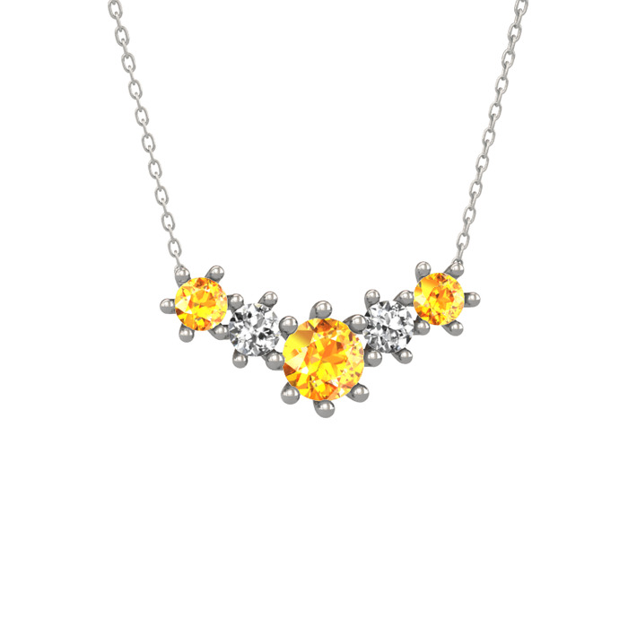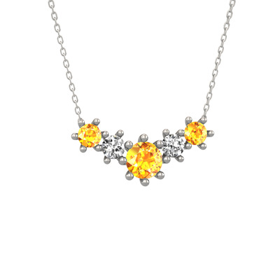 Sitrin ve beyaz zirkon 18 ayar beyaz altın kolye (40 cm beyaz altın rolo zincir)