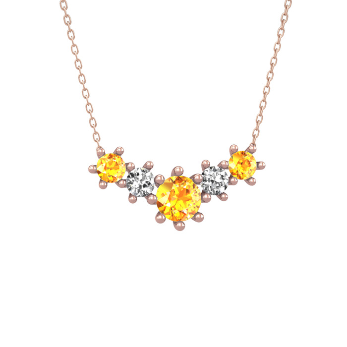 Sitrin ve beyaz zirkon 18 ayar rose altın kolye (40 cm rose altın rolo zincir)