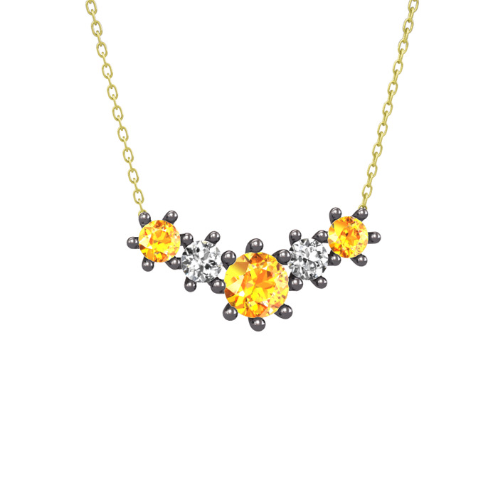 Sitrin ve beyaz zirkon 925 ayar siyah rodyum kaplama gümüş kolye (40 cm altın rolo zincir)