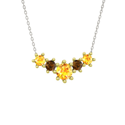 Sitrin ve dumanlı kuvars 18 ayar altın kolye (40 cm beyaz altın rolo zincir)