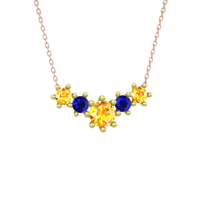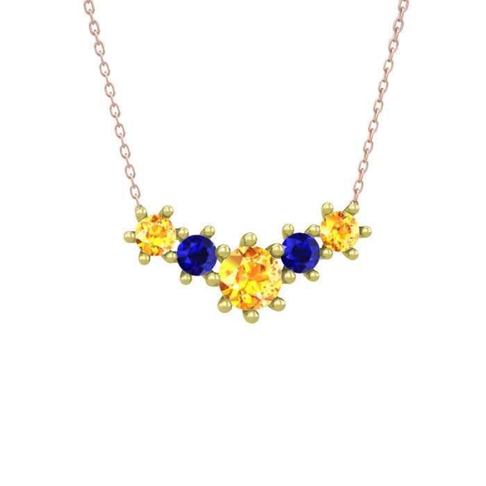 Sitrin ve lab safir 18 ayar altın kolye (40 cm rose altın rolo zincir)