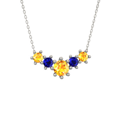Sitrin ve lab safir 18 ayar beyaz altın kolye (40 cm beyaz altın rolo zincir)