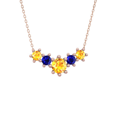 Sitrin ve lab safir 18 ayar rose altın kolye (40 cm rose altın rolo zincir)