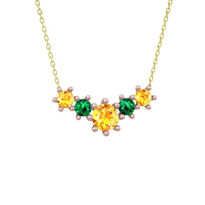 Sitrin ve yeşil kuvars 18 ayar rose altın kolye (40 cm gümüş rolo zincir)
