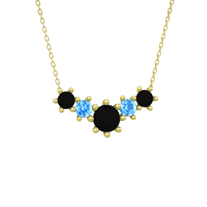 Siyah zirkon ve akuamarin 8 ayar altın kolye (40 cm altın rolo zincir)