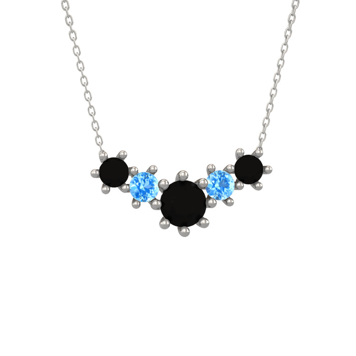 Siyah zirkon ve akuamarin 8 ayar beyaz altın kolye (40 cm beyaz altın rolo zincir)