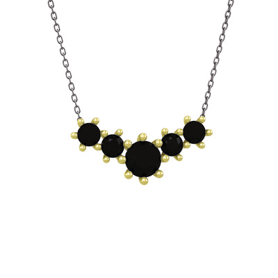 Siyah zirkon 925 ayar altın kaplama gümüş kolye (40 cm gümüş rolo zincir)