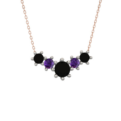 Siyah zirkon ve ametist 18 ayar beyaz altın kolye (40 cm gümüş rolo zincir)