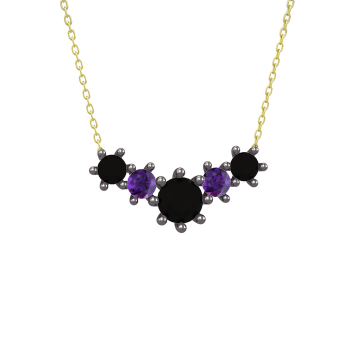 Siyah zirkon ve ametist 925 ayar siyah rodyum kaplama gümüş kolye (40 cm altın rolo zincir)