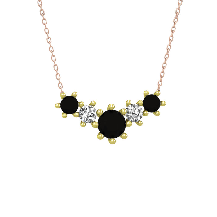 Siyah zirkon ve beyaz zirkon 8 ayar altın kolye (40 cm rose altın rolo zincir)