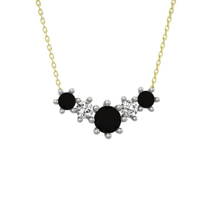 Siyah zirkon ve beyaz zirkon 8 ayar beyaz altın kolye (40 cm altın rolo zincir)