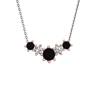 Siyah zirkon ve beyaz zirkon 925 ayar rose altın kaplama gümüş kolye (40 cm gümüş rolo zincir)