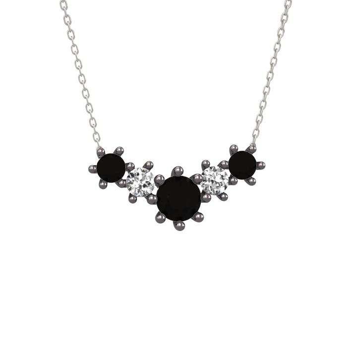 Siyah zirkon ve beyaz zirkon 925 ayar siyah rodyum kaplama gümüş kolye (40 cm beyaz altın rolo zincir)