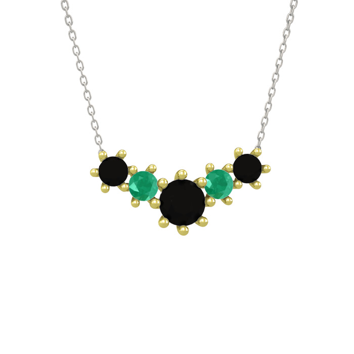 Siyah zirkon ve kök zümrüt 925 ayar altın kaplama gümüş kolye (40 cm beyaz altın rolo zincir)