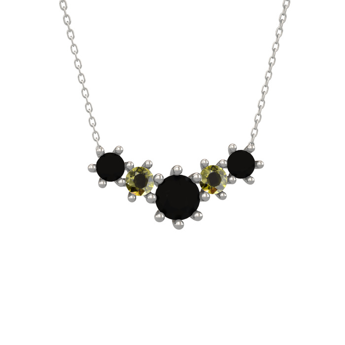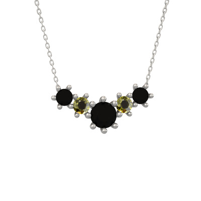 Siyah zirkon ve peridot 18 ayar beyaz altın kolye (40 cm beyaz altın rolo zincir)