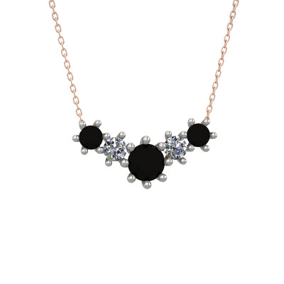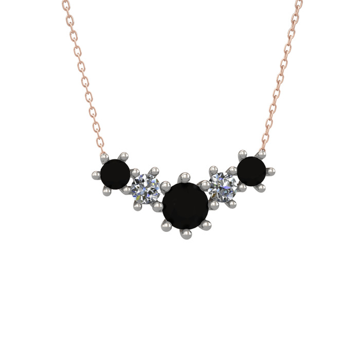 Siyah zirkon ve pırlanta 14 ayar beyaz altın kolye (0.32 karat, 40 cm rose altın rolo zincir)
