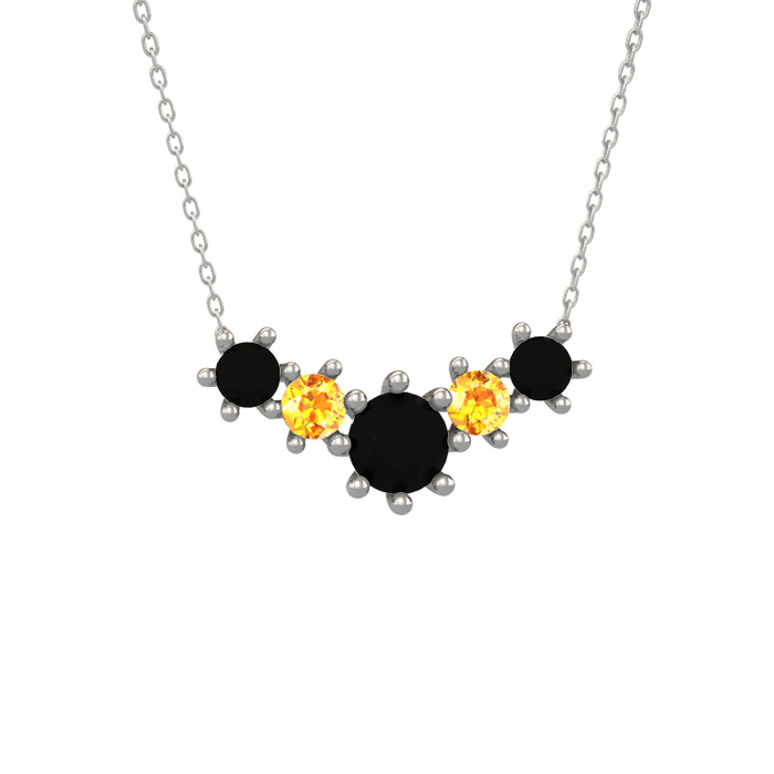 Siyah zirkon ve sitrin 14 ayar beyaz altın kolye (40 cm beyaz altın rolo zincir)