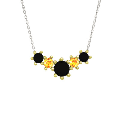Siyah zirkon ve sitrin 925 ayar altın kaplama gümüş kolye (40 cm beyaz altın rolo zincir)