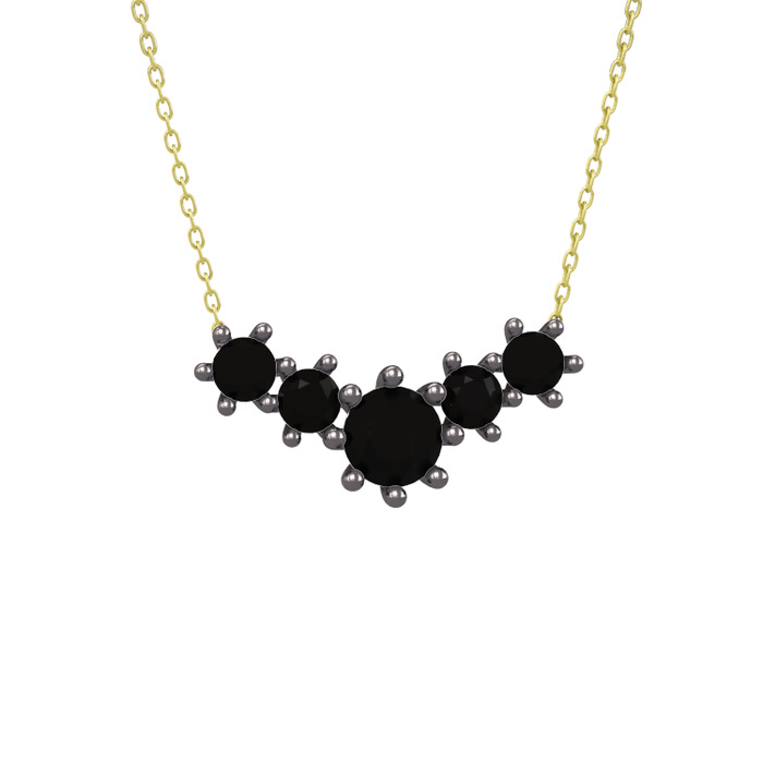 Siyah zirkon 925 ayar siyah rodyum kaplama gümüş kolye (40 cm gümüş rolo zincir)