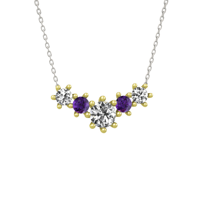 Swarovski ve ametist 18 ayar altın kolye (40 cm beyaz altın rolo zincir)