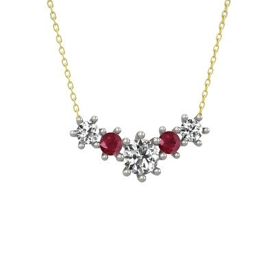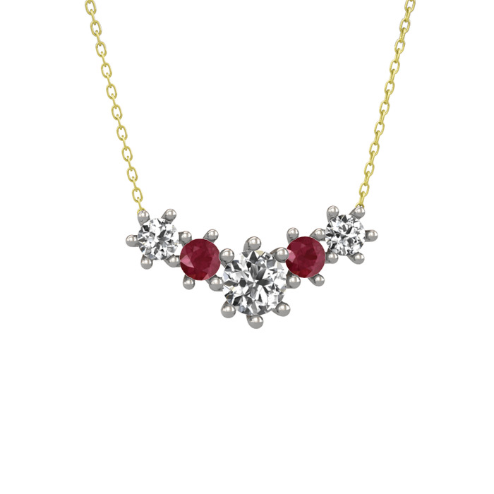 Swarovski ve kök yakut 18 ayar beyaz altın kolye (40 cm altın rolo zincir)