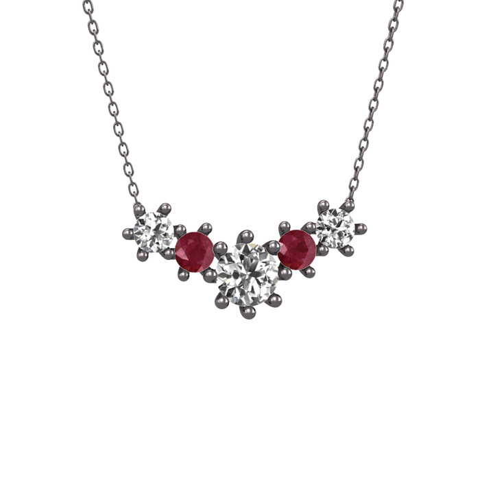 Swarovski ve kök yakut 925 ayar siyah rodyum kaplama gümüş kolye (40 cm gümüş rolo zincir)
