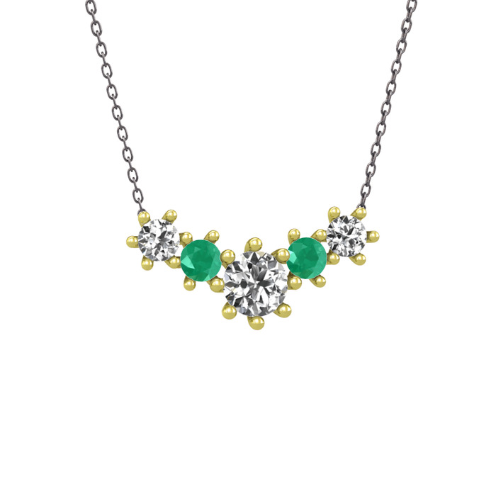 Swarovski ve kök zümrüt 925 ayar altın kaplama gümüş kolye (40 cm gümüş rolo zincir)