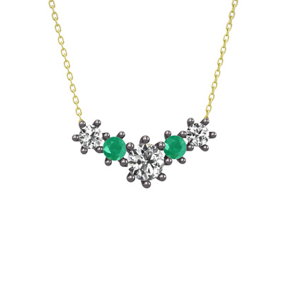 Swarovski ve kök zümrüt 925 ayar siyah rodyum kaplama gümüş kolye (40 cm altın rolo zincir)