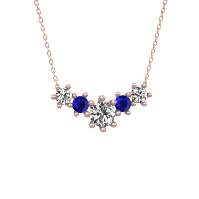 Swarovski ve lab safir 18 ayar rose altın kolye (40 cm rose altın rolo zincir)