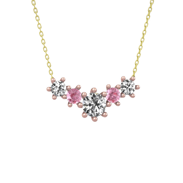 Swarovski ve pembe kuvars 8 ayar rose altın kolye (40 cm altın rolo zincir)