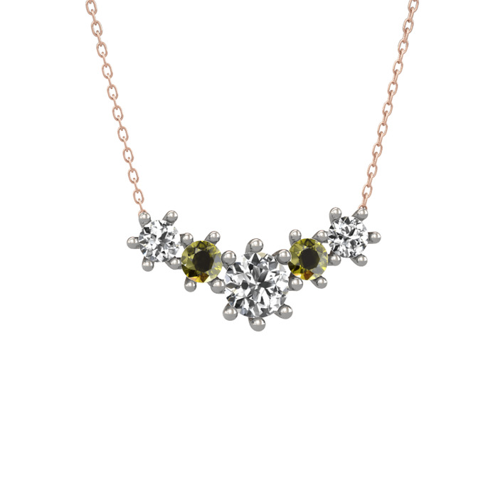 Swarovski ve peridot 8 ayar beyaz altın kolye (40 cm rose altın rolo zincir)