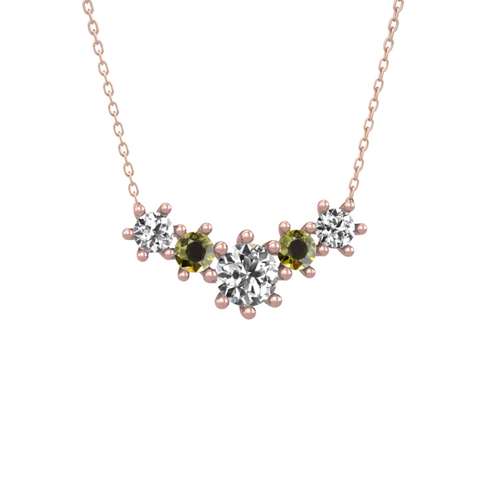 Swarovski ve peridot 925 ayar rose altın kaplama gümüş kolye (40 cm rose altın rolo zincir)