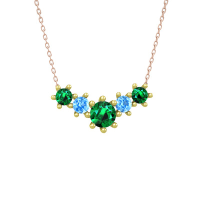 Yeşil kuvars ve akuamarin 18 ayar altın kolye (40 cm rose altın rolo zincir)