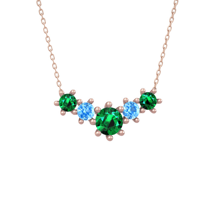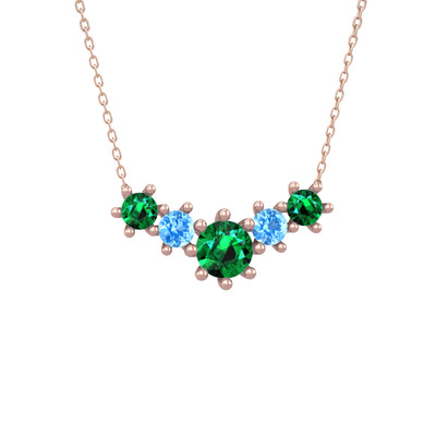 Yeşil kuvars ve akuamarin 18 ayar rose altın kolye (40 cm rose altın rolo zincir)