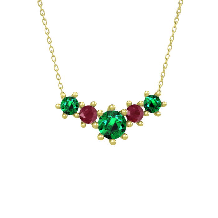 Yeşil kuvars ve kök yakut 14 ayar altın kolye (40 cm altın rolo zincir)