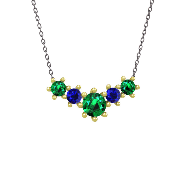 Yeşil kuvars ve lab safir 925 ayar altın kaplama gümüş kolye (40 cm gümüş rolo zincir)