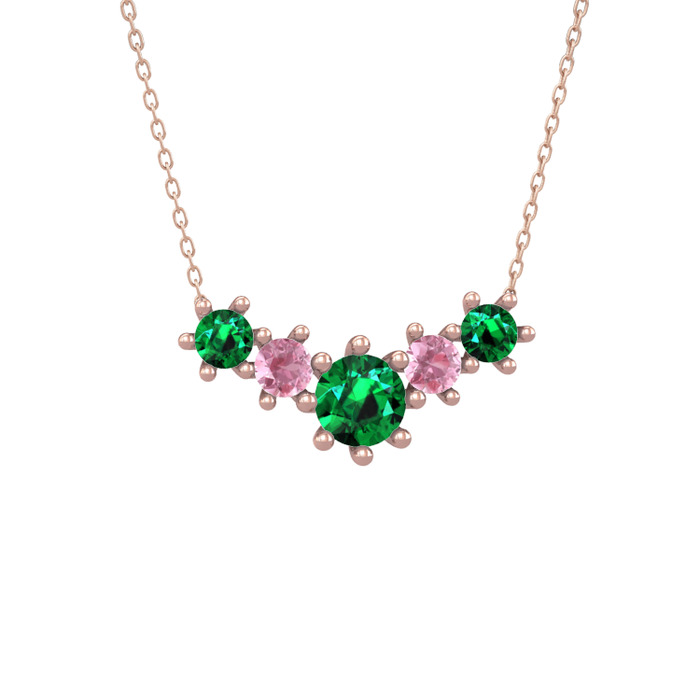 Yeşil kuvars ve pembe kuvars 14 ayar rose altın kolye (40 cm rose altın rolo zincir)
