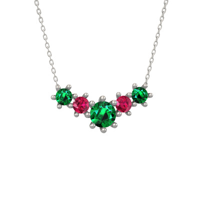 Yeşil kuvars ve rodolit garnet 18 ayar beyaz altın kolye (40 cm beyaz altın rolo zincir)
