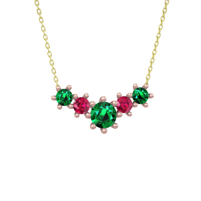 Yeşil kuvars ve rodolit garnet 8 ayar rose altın kolye (40 cm altın rolo zincir)