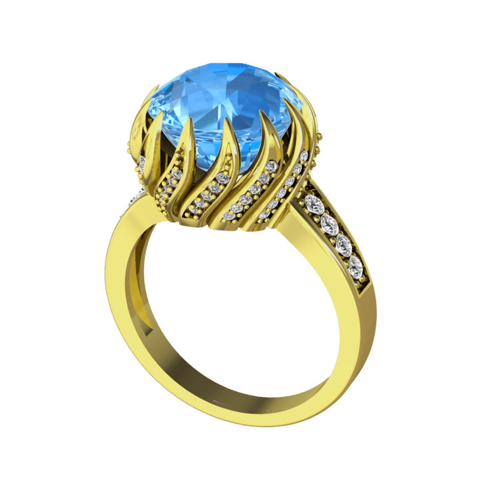 Akuamarin ve swarovski 14 ayar altın yüzük