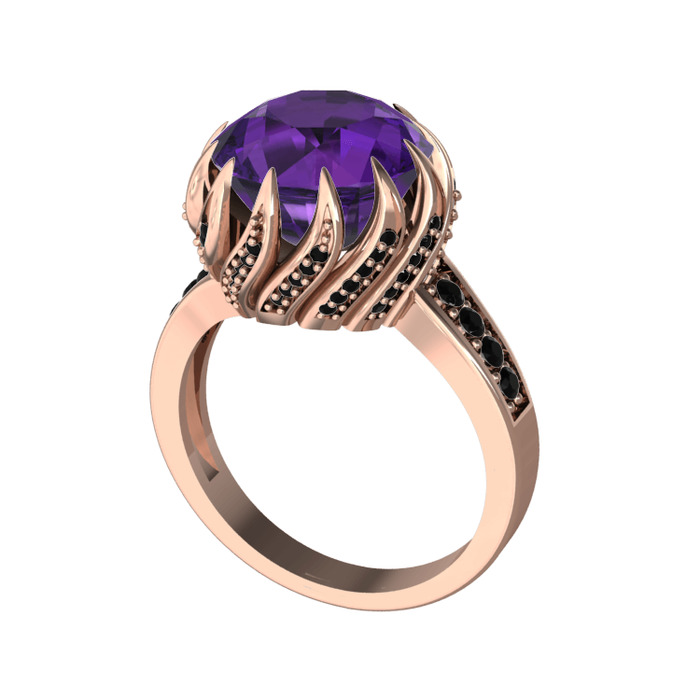 Ametist ve siyah zirkon 14 ayar rose altın yüzük