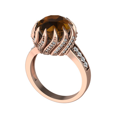 Dumanlı kuvars ve beyaz zirkon 8 ayar rose altın yüzük