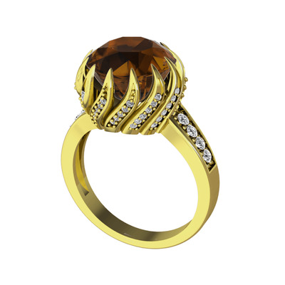 Dumanlı kuvars ve swarovski 8 ayar altın yüzük